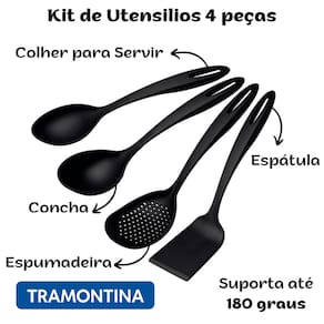 Utensílios de nylon resistentes até temperatura de 180 °C. Utensílios ideais para uso em panelas com revestimentos antiaderentes e cerâmicos, pois não danifica o produto.