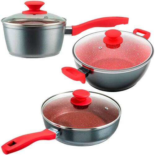 Jogo de Panelas Philco Antiaderente Redstone 3 Pecas Tampa em Vidro