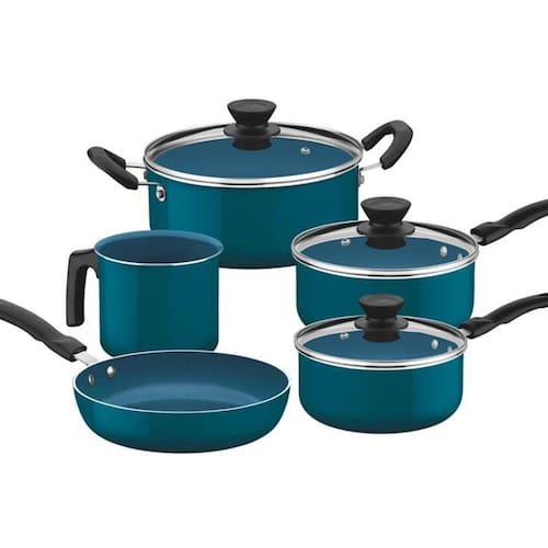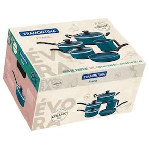 Jogo de Panelas com Revestimento Interno Cerâmico 5 peças Évora Tramontina Descrição: A Tramontina resolveu combinar cor e cerâmica em uma linha de panelas, a Évora. Produzidas com revestimento interno cerâmico e externo siliconado. Com tampas de vidro temperado possuem saída de vapor e bordas de aço inox. Os cabos, alças e os pegadores não aquece durante o preparo dos alimentos. Composição: 1 - Caçarola 22 cm 3,6 L. 1 - Fervedor 14 cm 1,8 L. 1 - Frigideira Reta 22 cm 1,6 L. 1 - Panela 16 cm 1,3 L. 1 - Panela 18 cm 2,0 L. Como usar o produto A capacidade volumétrica máxima para cozimento é de 3/4 da capacidade total da peça. Posicione os cabos dos utensílios voltados ao centro do fogão. Em fogões com grade, centralize a peça e alinhe o cabo com a grade. Utensílios quentes devem estar fora do alcance das crianças. Estes produtos não podem sofrer modificações. Antes do primeiro uso, lave com esponja macia, sabão neutro ou detergente líquido. Seque com um pano seco. Seu utensílio está pronto para uso, sempre em fogo baixo ou médio (nunca superior a 220ºC). Ao manusear seu utensílio aquecido, cuide para não arranhar/riscar o revestimento externo. Evite manchas não escorrendo gordura e alimentos na área externa da peça. O preparo de molhos e alimentos com forte pigmentação pode causar alteração na cor do revestimento interno. Para mexer os alimentos use somente utensílios de silicone, nylon ou madeira. Limpeza: Evite a imersão do utensílio quente em água fria. Nunca utilize produtos abrasivos na lavagem. Se deixar queimar alimentos, umedeça a área e reserve até que possa remover os resíduos grudados com esponja e sabão. Para descarte dos produtos e embalagens siga as orientações de reciclagem vigentes. Estes produtos não necessitam de manutenção, apenas limpeza. Descrição técnica: Corpo de alumínio com espessura que proporciona cozimento rápido e uniforme. Revestimento interno cerâmico e externo de silicone. Tampas de vidro temperado com saída de vapor e bordas de aço inox. Cabos e alças de baquelite antitérmico e pegadores de nylon que proporciona redução da propagação de calor, aumentando a segurança e melhorando a empunhadura. Especificação técnica: EAN13: 7891112283725 DUN14: 17891112283722 NCM: 7615.10.00 Peso Líquido: 3,8400 kg. Peso Bruto: 4,7600 kg. Metragem: 0,034763 m³. Cor 1: 006271 Hexa