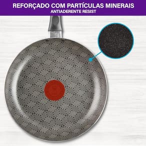 Antiaderente Resist: Limpa fácil e dura mais, reforçado com partículas minerais. Thermo-Sinal: Muda de cor indicando o momento perfeito para selar o seu alimento. Base Limpa Fácil: Não mancha, não gruda e é fácil de limpar. Cabos reforçados: mais segurança e conforto.