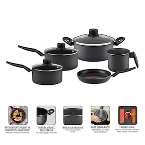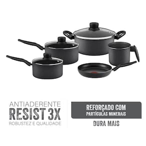 Antiaderente Resist 3X: Robustez e Qualidade. Reforçado com partículas minerais, dura mais.Durabilidade e resistência: Alta espessura para durar mais.Base Limpa Fácil: Não mancha, não gruda e é fácil de limpar.Thermo-sinal: Muda de cor indicando o momento ideal de selar seu alimento.Marcas de Medidas: Para facilitar o preparo.Além de contar com a qualidade da marca Rochedo, presente no Brasil há mais de 100 anos, as panelas e frigideiras do Jogo de Panelas Rochedo Robusta Grafite 5 Peças são livres de substâncias tóxicas (PFOA), garantindo a segurança no uso dos produtos. Podem ser utilizadas em fogão a gás, vitrocerâmico e elétrico, podendo também ser levadas à máquina de lavar louças.