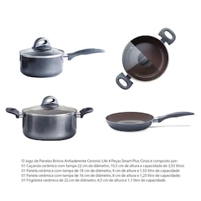 Se você procura panelas que combinem beleza, funcionalidade e saúde, o Jogo de Panelas Brinox Antiaderente Ceramic Life 4 Peças Smart Plus Cinza é a escolha perfeita para transformar sua cozinha.