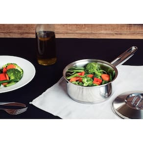 O design clean da linha Solar foi criado para tornar mais simples as tarefas de forno e fogão. O Jogo de Panelas Tramontina Solar em Aço Inox com Fundo Triplo 5 Peças possui um design moderno, com acabamento em alto brilho. O fundo triplo (aço inox + alumínio + aço inox) distribui o calor uniformemente, proporcionando um cozimento mais rápido e uniforme, economizando energia e deixando os alimentos aquecidos por mais tempo. Desenho limpo e sem cantos torna a limpeza mais fácil. Sua tampa tem saída de vapor e encaixe perfeito.