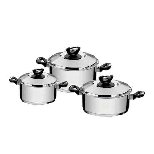 Tenha momentos incríveis na cozinha com o Jogo de Panelas Tramontina Solar Baquelite em Aço Inox com Fundo Triplo e Cabos e Alças de Baquelite 3 Peças. As peças produzidas totalmente em aço inox com tecnologia de fundo triplo (aço inox + alumínio + aço inox), distribuem o calor uniformemente, proporcionando um cozimento mais rápido e deixando os alimentos aquecidos por mais tempo. As peças possuem cabos e pegadores em baquelite, um isolante térmico que protege suas mãos do calor. Possuem design moderno com acabamento em alto brilho, proporcionando uma aparência cheia de estilo para sua cozinha. Aliando praticidade com segurança, o conjunto possui protetor de chamas, que evitam queimaduras quando a chama não estiver centralizada no fundo da panela e suas tampas possuem saída de vapor e encaixe perfeito. Pensada para facilitar a limpeza, podem ser lavadas diariamente na máquina de lavar louças. Garanta já o seu e dê um toque de elegância em sua cozinha!Mais saudável: por ser feita de aço inoxidável, a panela Tramontina não libera nenhum tipo de resíduo nas suas receitas.