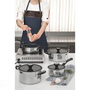 Economiza tempo e energia: o segredo está no fundo triplo (aço inox + alumínio + aço inox), que distribui o calor uniformemente, proporcionando um cozimento mais rápido. Por isso, você pode manter o fogo baixo durante todo o preparo e, assim, poupar energia.
