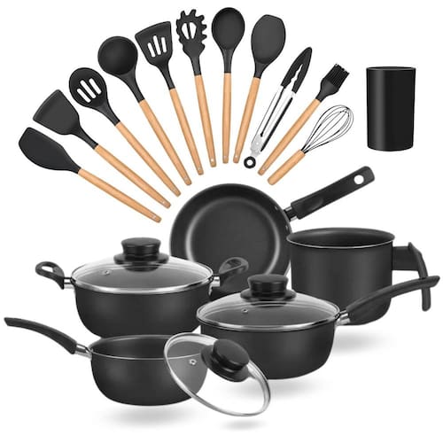 Dê um toque de chef à sua cozinha com este Conjunto de Panelas Super Elegan de alta qualidade e um kit de utensílios de silicone versátil. Com um total de 17 peças, este kit é a combinação perfeita de beleza e funcionalidade, ideal para cozinheiros amadores e profissionais. Características do Conjunto de Panelas 5 Peças : - Material de Alta Qualidade: Panelas de alumínio com revestimento antiaderente, duráveis e fáceis de limpar. - Design Moderno: Cor sofisticada com interior texturizado, proporcionando um visual elegante e contemporâneo. - Cozimento Eficiente: Distribuição uniforme do calor para um cozimento rápido e resultados saborosos. - Tampas de Vidro: Visibilidade total com tampas de vidro temperado, resistentes e com saída para vapor. - Facilidade de Uso: Cabos ergonômicos que não aquecem, proporcionando segurança e conforto ao manusear. Kit de Utensílios de Silicone 12 Peças : - Versatilidade Total: Conjunto inclui colheres, espátulas, pegador e muito mais. - Silicone Resistente ao Calor: Utensílios seguros para uso em diferentes superfícies, não arranham panelas e suportam altas temperaturas. - Materiais Seguros: Livres de BPA, higiênicos e fáceis de limpar. - Cabo de Madeira: Cabos em madeira para um toque rústico e conforto adicional. - Suporte Incluso: Mantenha seus utensílios organizados e sempre à mão com o suporte prático. Este conjunto é o upgrade que sua cozinha merece, combinando utilidade com estilo. Ideal para presentear ou renovar os utensílios de sua casa. Surpreenda-se com a qualidade e durabilidade deste kit de 17 peças e transforme suas experiências culinárias de Satisfação: Nosso conjunto de panelas e utensílios é coberto por uma de satisfação. Qualquer problema, estamos aqui para ajudar Itens Incluídos: - 1 Panela de 18 cm - 1 Panela de 16 cm - 1 Caçarola 18 cm - 1 Leiteira 14 cm - 1 Frigideira 20 cm - 1 Colher Escumadeira - 1 Espátula Sólida - 1 Colher para Servir - 1 Espátula Vazada - 1 Colher Raspadora - 1 Espátula Raspadora - 1 Pegador de Macarrão - 1 Concha de Sopa - 1 Pincel Culinário - 1 Pinça Pegador - 1 Fouet Batedor - 1 Suporte em Cilindro Marca: Não Informado Ean: 7898607808517