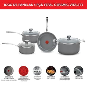 Com a confiança e qualidade da Tefal, a marca número 1 em panelas no mundo, este conjunto oferece o melhor para quem deseja transformar cada refeição em um momento especial. Elevando sua experiência na cozinha, o Jogo de Panelas Tefal Ceramic Vitality 4 Peças é a escolha perfeita para quem busca o melhor em cada detalhe.