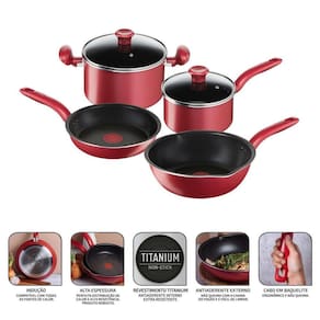 Características: Revestimento Titanium antiaderente (interno e externo) duas vezes mais durável; Fundo triplo espesso (3,2mm) compatível com indução; Tecnologia Thermo-Sinal® que indica o ponto ideal de cozimento; Distribuição uniforme de calor para resultados perfeitos; Fácil limpeza e acabamento premium;