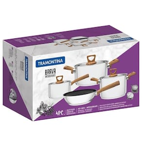 - Mude a sua forma de cozinhar com o Jogo de Panelas Tramontina Brava Antiaderente em Aço Inox com Fundo Triplo Cabos e Alças com Acabamento Efeito Amadeirado 4 Peças.