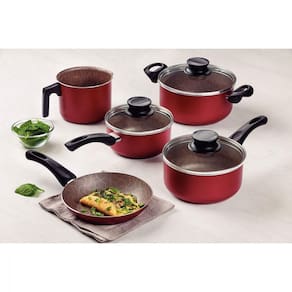 O Jogo de Panelas Tramontina Paris Texture em Alumínio com Revestimento Interno e Externo Antiaderente Starflon Max Vermelho 5 Peças é a escolha ideal para completar sua cozinha! Suas peças são produzidas em alumínio com revestimento interno e externo antiaderente Starflon Max, características que garantem o cozimento uniforme dos alimentos e evitam que eles grudem nas superfícies. As panelas e a caçarola possuem tampas de vidro temperado com bordas em aço inox e os cabos e alças são em baquelite antitérmico, o que garante segurança e conforto durante o manuseio. É ainda um jogo muito prático, fácil de limpar e que pode ir à máquina de lavar louças, otimizando sua rotina na cozinha
