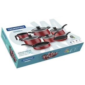 Jogo de panelas tramontina 7 peças teflon antiaderente vermelho coimbra