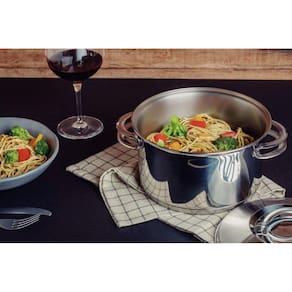 Jogo De Panelas Tramontina Aço Inox Fundo Triplo Solar 5 PeçasA Linha Solar da Tramontina é aquele clássico com design atemporal, grandes funcionalidades e a praticidade que precisamos no cotidiano. As Panelas são feitas em aço inox, garantindo grande resistência e durabilidade, ainda com um fundo triplo (aço inox + alumínio + aço inox) que distribui o calor, gerando um cozimento rápido e uniforme.Acabamento em alto brilho é o detalhe que mais chama a atenção nesses itens, mas eles também possuem um desenho limpo e sem cantos que facilita a higienização, além de deixar as peças ainda mais elegantes e modernas. E o melhor de tudo é que para os dias mais corridos você pode utilizar lava-louças para fazer a limpeza dos produtos.Características:Marca: TramontinaCódigo do Fabricante: 65510780Linha: SolarCor: InoxMaterial: Aço inoxMaterial da Alça/Pegador: Aço inoxFundo Triplo: SimFogões Compatíveis: Gás, elétrico, vitrocerâmico e induçãoConteúdo: 1 Caçarola Funda 20cm 3.6L, 1 Caçarola Rasa 20cm 2.9L, 1 Cozi-vapore 20cm 2.2L, 1 Frigideira 20cm 2.2L e 1 Panela 16cm 1.4LCompatível com Lava-louças: SimCompatível com Forno: Sim (até 260, podendo haver mudança na coloração)Material da Tampa: Aço inoxSaída de Vapor: Sim