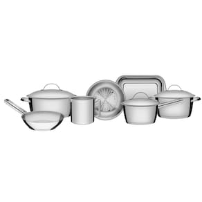 Sua cozinha ficará completa com o Jogo de Panelas Tramontina Allegra em Aço Inox com Fundo Triplo 7 Peças. São sete peças perfeitas para você preparar diferentes tipos de receitas, das mais simples às mais complexas. Elas apresentam fundo triplo (aço inox + alumínio + aço inox), tecnologia que distribui o calor uniformemente, cozinhando os alimentos mais rápido e economizando energia. São utensílios de muito bom gosto e totalmente produzidos em aço inox. Eles embelezam sua cozinha dando um toque de elegância e estilo. O design moderno também traz tampa com saída de vapor e encaixe perfeito, facilitando o uso. Ideal para as tarefas do dia-a-dia ou para aquela reunião com pessoas especiais. As peças ainda são muito versáteis, podendo ir ao forno e em diferentes tipos de fogões. O fervedor não é indicado para o fogão à indução.