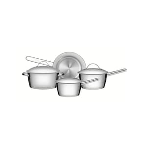 Tenha produtos práticos e diferenciados na sua cozinha. O Jogo de Panelas Tramontina Allegra em Aço Inox com Fundo Triplo 6 Peças facilita seu dia-a-dia e ainda embeleza sua cozinha. São 6 peças com design moderno que dá um toque cheio de estilo ao ambiente. As panelas ainda apresentam tecnologia de fundo triplo (aço inox + alumínio + aço inox), distribuindo melhor o calor, proporcionando um cozimento mais rápido e uniforme. E o melhor, economizando mais energia! São totalmente produzidas em aço inox, material que atesta alta durabilidade e bom gosto. Acompanham tampa com saída de vapor e são ainda muito fáceis de limpar. Podendo ser lavadas diariamente na máquina de lavar louças Elas ainda impressionam pela versatilidade, podendo ser usadas em diferentes tipos de fogões. O fervedor não é apto para fogão de indução.