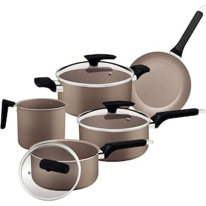 O Jogo de Panelas Tramontina Alumínio Milazzo Amêndoas 5 Peças combina praticidade, segurança e elegância para sua cozinha. Com revestimento interno e externo antiaderente Starflon Max, é fácil de limpar, resistente e seguro para a saúde, pois é livre de PFOA. Suas tampas de vidro temperado com borda de aço inox permitem acompanhar o preparo sem perder calor, enquanto as alças e cabos de baquelite antitérmico com acabamento soft-touch garantem conforto no manuseio. Compatível com fogões a gás, elétricos e vitrocerâmicos, oferece versatilidade para qualquer preparo. Características: Marca: Tramontina Código do Fabricante: 28599461 Linha: Milazzo Cor: Amêndoas Material: Alumínio Material da Tampa: Vidro temperado Material Pegadores: Nylon Material Alças/Cabos: Baquelite antitérmico Antiaderente: Sim Fogões Compatíveis: Gás, elétricos e vitrocerâmicos Conteúdo: 1 Caçarola 20cm 2.9L, 1 Fervedor 14cm 1.9L, 1 Frigideira 20cm 0.8L, 1 Panela 16cm 1.5L e 1 Panela 18cm 2.1L Compatível com Micro-ondas: Não Compatível com Lava-louças: Não Pode ir ao Forno: Não Saída de vapor: Sim Livre de PFOA: Sim Marca: Não Informado