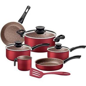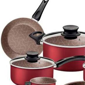 Segurança a toda prova As panelas possuem revestimento antiaderente, tampa de vidro temperado com direito a saída de vapor, além de cabos e alças antitérmicos. Assim, os alimentos não grudam, você se protege contra incidentes e ganha muita praticidade no manuseio dos utensílios. Feito em alumínio, o modelo vai te servir por muito tempo com garantia de satisfação.