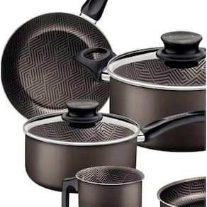 Segurança a toda prova As panelas possuem revestimento antiaderente, tampa de vidro temperado com direito a saída de vapor, além de cabos e alças antitérmicos. Assim, os alimentos não grudam, você se protege contra incidentes e ganha muita praticidade no manuseio dos utensílios. Feito em alumínio, o modelo vai te servir por muito tempo com garantia de satisfação.