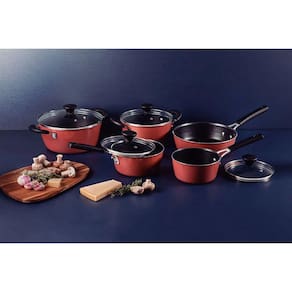 Corpo de alumínio com espessura que proporciona cozimento rápido e uniforme. Revestimento interno de antiaderente Starflon Crystals que não gruda, é fácil de limpar, mais durável, não é prejudicial a saúde e é livre de PFOA. Revestimento externo esmaltado. Tampas de vidro temperado, com saída de vapor e bordas de aço inox. Cabos, alças e pegadores de baquelite antitérmico que oferecem segurança durante o manuseio. Podem ir à máquina de lavar louças facilitando seu dia a dia. Pode ser utilizada nos fogões: gás, elétrico e vitrocerâmico.