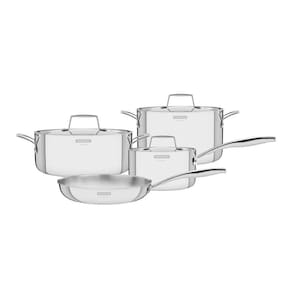 Com o Jogo de Panelas Tramontina Grano em Aço Inox com Corpo Triplo Cabos e Alças 4 Peças sua cozinha vai estar completa! Perfeito para receber a família e amigos e preparar as melhores receitas, o jogo com 4 panelas traz toda a qualidade e tecnologia da Tramontina. Produzidas com a durabilidade do aço inox, não soltam resíduos, além de possuírem fundo triplo (aço inox + alumínio + aço inox), que distribui o calor uniformemente, proporcionando um cozimento mais rápido. Por isso, você pode manter o fogo baixo durante todo o preparo e, assim, poupar energia. São peças fáceis de limpar que basta uma esponja macia e água e sabão deixar tudo brilhando ou você também pode levados à máquina de lavar diariamente. Versáteis, podem ser usadas em fogões a gás, elétrico, vitrocerâmico e indução.