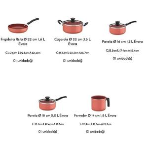Jogo De Panelas Tramontina évora Alumínio Com Rev. Interno Cerâmico E Externo De Silicone Coral 5 Pe JOGO DE PANELAS TRAMONTINA ÉVORA ALUMÍNIO COM REV. INTERNO CERÂMICO E EXTERNO DE SILICONE CORAL 5 PEÇAS 28699401 Marca: Tramontina Modelo: Évora em Alumínio com Revestimento Interno Cerâmico e Externo de Silicone Coral 5 Peças 28699/401 CONTEÚDO DO JOGO 1 Caçarola 22 cm 3,6 L Évora 1 Fervedor 14 cm 1,8 L Évora 1 Frigideira Reta 22 cm 1,6 L Évora 1 Panela 16 cm 1,3 L Évora 1 Panela 18 cm 2,0 L Évora