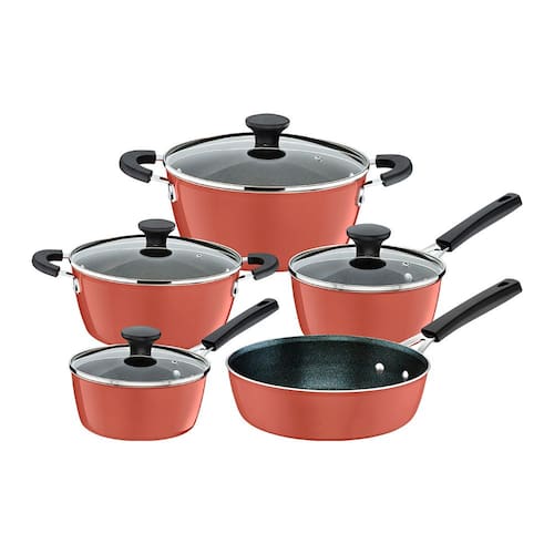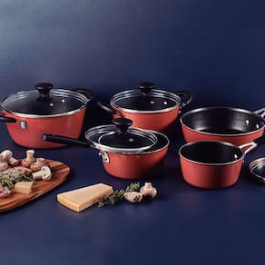 O que vem na caixa: 1 Caçarola Ø 20cm 1 Caçarola Ø 24cm 1 Frigideira Funda Ø 24cm 1 Panela Ø 16cm 1 Panela Ø 18cm