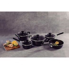 Com o jogo de panelas Tramontina Glenz em alumínio com revestimento interno em Starflon Crystals e externo esmaltado cinza stone 05 peças você deixa sua cozinha muito mais moderna e garante alta qualidade e praticidade para o preparo das suas refeições. Desenvolvidas com corpo de alumínio com espessura de 2,5 milímetros e revestimento interno em Starflon Crystals, suas peças cozinham os alimentos de maneira rápida e uniforme, evitam que eles grudem em sua superfície e é muito fácil de limpar. Elas tem cabos, alças e pegadores de baquelite antitérmico, material que oferece maior durante o manuseio, pois não aquece e ainda contam com revestimento externo esmaltado na cor cinza stone. As caçarolas e panelas do jogo vem com tampas de vidro temperado com saída de vapor e bordas de aço inox e ainda podem ser levadas à máquina de lavar louças, deixando sua rotina na cozinha muito mais prática e eficiente!