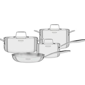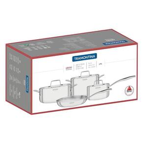 Com o Jogo De Panelas Tramontina Grano Inox Corpo Triplo 4 Peças sua cozinha vai estar completa. Perfeito para receber a família e amigos e preparar as melhores receitas, o jogo com 4 panelas traz toda a qualidade e tecnologia da Tramontina. Produzidas com a durabilidade do aço inox, não soltam resíduos, além de possuírem corpo triplo (aço inox + alumínio + aço inox), que distribui o calor uniformemente, proporcionando um cozimento mais rápido. O jogo ainda proporciona um manuseio mais confortável por possuir cabos e pegadores em baquelite, antitérmico que não aquece. São peças fáceis de limpar que basta uma esponja macia e água e sabão deixar tudo brilhando ou você também pode levar à máquina de lavar diariamente. Versáteis, podem ser usadas em fogões a gás, elétrico, vitrocerâmico e indução. Características: - Mais saudável - Fácil de usar - Mais durável - Economiza tempo e energia - Fácil de limpar Recomendação De Uso: - Use apenas sabão ou detergente e uma esponja macia. - Enxágue bem cada peça a fim de remover totalmente os resíduos dos produtos de limpeza, que, por serem abrasivos, podem atacar o inox. - Sempre que possível, use água quente, pois renova o brilho do talher. - Após a lavagem, enxugue imediatamente, caso contrário, as substâncias químicas da água (cloro) poderão causar manchas. - Evite atrito entre as peças durante o processo de lavagem e no armazenamento, para mantê-los sem riscos. - Não guarde as peças em locais úmidos. A umidade também provoca manchas. Especificações Técnicas Marca: Tramontina Material: Aço Inox Linha: Grano Cor: Inox Quantidade de Peças: 4 Revestimento Antiaderente: Não Tipos de Fogões: fogões a gás, elétrico, vitrocerâmico e indução Funciona em Lava-Louça: Sim Fundo Triplo: Sim Conteúdo Da Embalagem 01 Caçarola Funda 20 cm 3,5 L. 01 Caçarola Rasa 24 cm 4,4 L. 01 Frigideira 26 cm 2,2 L. 01 Panela 16 cm 1,7 L. Sobre a Tramontina A Tramontina é reconhecida como referência de qualidade em mais de 120 países, apoiando na inovação, no design, na tecnologia e no valor do capital humano para cumprir uma missão indelegável: gerar valor ao consumidor nas mais diversas fronteiras, culturas, épocas e ocasiões.