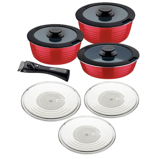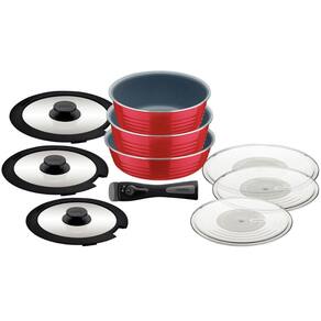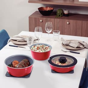 Jogo de Panelas Multiuso Tramontina Ítria em Alumínio com Revestimento Interno e Externo Cerâmico Vermelho 10 Peças.
