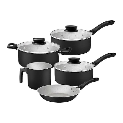 Especificações Pegador / Cabo: Baquelite Antitérmico e Nylon Dimensões AxLxP (mm): Caçarola Ø 20cm; Fervedor Ø 12cm; Frigideira Ø 20cm; Panela Ø 16cm; Panela Ø 18cm Cor: Preto Material: Alumínio e baquelite Garantia: 90 dias junto ao fabricante Tecnologia da Panela: Starflon Max Pode ir à Máquina de Lavar Louças?: Sim Capacidade da Panela: Caçarola 2,8L; Fervedor 1,1L; Frigideira 0,8L; Panela 1,4L; Panela 2L Linha: Linz Revestimento Interno: Antiaderente Tipo de Fogão: Gás, elétricos e vitrocerâmicos (resistência elétrica) Tampa: Panelas e caçarola: sim, de vidro com saída de vapor