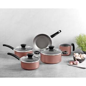 Com visual contemporâneo e pensado para facilitar a rotina, o jogo de panelas Tramontina Michigan em alumínio com revestimento interno e externo antiaderente Starflon Max siena natural 5 peças reúne funcionalidade e versatilidade para o preparo das refeições. O conjunto inclui frigideira, panelas, caçarola e fervedor, atendendo diferentes necessidades do dia a dia. As peças em alumínio garantem aquecimento eficiente e distribuição uniforme do calor, enquanto o revestimento antiaderente Starflon Max contribui para preparos mais práticos e limpeza facilitada. As tampas de vidro temperado com bordas em aço inox permitem acompanhar o cozimento, e os cabos e alças em baquelite antitérmico oferecem segurança e conforto no manuseio. Um conjunto equilibrado para compor a cozinha com praticidade e estilo.