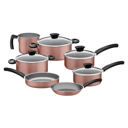 O jogo de panelas Tramontina Michigan em alumínio com revestimento interno e externo antiaderente Starflon Max com cabos e alças siena natural 7 peças combina funcionalidade e um visual equilibrado para a rotina da cozinha. O conjunto reúne frigideiras, panelas, caçarolas e fervedor, oferecendo praticidade para diferentes preparos. Produzidas em alumínio, as peças garantem aquecimento eficiente e distribuição uniforme do calor. O revestimento antiaderente Starflon Max contribui para preparos mais práticos e limpeza facilitada. As tampas de vidro temperado com bordas em aço inox permitem acompanhar o cozimento, enquanto os cabos e alças em baquelite antitérmico proporcionam segurança e conforto no manuseio. Um conjunto versátil, pensado para o uso diário.