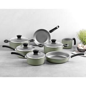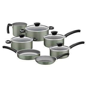 O jogo de panelas Tramontina Michigan em alumínio com revestimento interno e externo antiaderente Starflon Max com cabos e alças verde oliva 7 peças é ideal para quem busca versatilidade e eficiência na cozinha. Composto por frigideiras, panelas, caçarolas e fervedor, o conjunto apresenta peças em alumínio com espessura que favorece o aquecimento rápido e a distribuição uniforme do calor. O revestimento antiaderente Starflon Max evita que os alimentos grudem e facilita a limpeza. As panelas e caçarolas contam com tampas de vidro temperado com bordas em aço inox, enquanto os cabos e alças em baquelite antitérmico garantem manuseio seguro e confortável. Um conjunto funcional que pode ir à máquina de lavar louças e atende bem às rotinas do dia a dia.