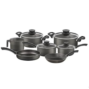 Você encontra os itens essenciais para sua cozinha no jogo de panelas Tramontina Paris em alumínio com revestimento interno e externo antiaderente Starflon Max chumbo 7 Peças! Produzido em alumínio com revestimento interno e externo antiaderente em Starflon Max, as peças que compõem o jogo garantem um cozimento uniforme dos alimentos e evitam que eles grudem em sua superfície. Seus cabos e alças são em baquelite antitérmico e os pegadores em nylon, dois materiais que não aquecem e oferecem um manuseio muito confortável e . Além disso, elas são muito fáceis de limpar e podem ser lavadas na máquina de lavar. Um jogo que vai completar sua cozinha com mais qualidade e estilo!