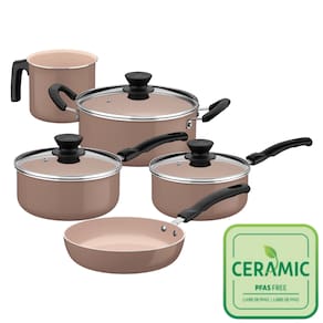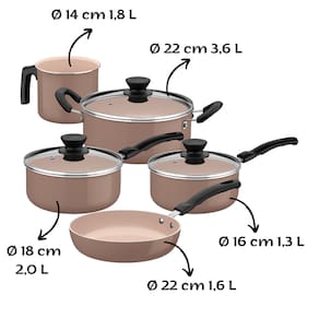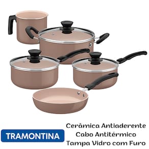 Jogo de Panelas Tramontina Évora em Alumínio com Revestimento Interno Cerâmico e Externo de Silicone Capuccino 5 Peças