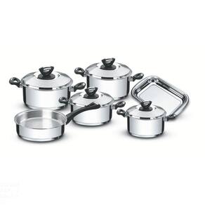Os amantes da culinária confirmam, além de alimentos saborosos, uma deliciosa refeição precisa ser preparada em utensílios de qualidade. O Jogo de Panelas Tramontina em Aço Inox Fundo Triplo com Cabos e Alças de Baquelite 6 Peças conjuga praticidade e segurança em toda sua linha. Totalmente feitas de aço inox, as panelas não soltam nenhum resíduo nos alimentos, mantendo-os saudáveis. O fundo triplo (aço inox + alumínio + aço inox) distribui o calor uniformemente, o que proporciona um cozimento mais rápido. Altamente duráveis, as panelas mantêm as características originais, preservando a beleza, a higiene e a durabilidade do material. Os cabos e alças possuem protetor de chamas e não aquecem, evitando que queimem quando a chama não estiver centralizada no fundo da panela. As tampas, com encaixe perfeito, têm saída de vapor para que a preparação da sua receita seja totalmente segura. O conjunto pode ser utilizados nos fogões: gás, elétrico, vitrocerâmico e indução e para limpar, basta colocar na máquina de lavar louça. O Jogo de Panelas Tramontina em Aço Inox Fundo Triplo com Cabos e Alças Baquelite com acabamento em brilho é perfeito para quem gosta de sofisticação e praticidade na cozinha. Orientações Mais saudável: por ser feita de aço inoxidável, a panela Tramontina não libera nenhum tipo de resíduo nas suas receitas. Fácil de usar: uma panela prática para todas as suas receitas e que faz bonito em qualquer tipo de fogão: gás, elétrico, vitrocerâmico e indução. Ainda possui tampa com saída de vapor e encaixe perfeito. Cabo e pegador em baquelite, não aquecem, com protetor de chamas, evitando que queimem quando a chama não estiver centralizada no fundo da panela. Mais durável: o inox Tramontina é uma matéria-prima nobre, resistente e que vai fazer bonito por muito mais tempo na cozinha. Economiza tempo e energia: o segredo está no fundo triplo (aço inox + alumínio + aço inox), que distribui o calor uniformemente, proporcionando um cozimento mais rápido. Por isso, você pode manter o fogo baixo durante todo o preparo e, assim, poupar energia. Fácil de limpar: deixar sua panela brilhando é simples, você só precisa de água, sabão e uma esponja macia. Se preferir, é só colocar na máquina de lavar. Características Gerais EAN13 7891116045251 DUN14 17891116045258 NCM 7323.93.00 Peso Líquido 7,7200 kg. Peso Bruto 8,4000 kg. Metragem 0,041729 m³. Dimensões Embalagem (Compr. X Larg. X Alt.) 562x 270x 275 mm. Observações A capacidade volumétrica máxima para cozimento é de 3/4 da capacidade total da peça.Antes do uso, remova as eventuais etiquetas presentes no produto, e em seguida recomendamos lavar. Use uma fonte de calor sempre baixa, para evitar que o alimento grude no fundo da panela. O fundo triplo distribui uniformemente o calor, não sendo necessário o fogo alto. E, além disso, você economiza energia. Quando a panela for utilizada no fogão a gás, a chama não deve ultrapassar a base da panela. No caso de uso de chapa elétrica, a chapa deverá ter diâmetro igual ou inferior ao da panela. Não aqueça o alimento colocando uma panela ou qualquer utensílio do mesmo diâmetro um sobre o outro. Esse procedimento é perigoso, pois cria vácuo e impossibilita a retirada. Não deixe a panela vazia sobre uma fonte de calor. Sempre dissolva o sal em água fervendo ou com os alimentos, mexendo os ingredientes no início do cozimento. Alguns alimentos que possuem amido, como massa e arroz, poderão deixar manchas na parte interna da panela durante o cozimento. Para remover facilmente as manchas, passe um pano umedecido com suco de limão ou vinagre, ou use a pasta Tramontina para polir e remover manchas. Evite deixar alimento na panela por muito tempo; o sal também pode provocar manchas e corrosão. Para que a panela de aço inox fique sempre bonita e com brilho, recomendamos que seja lavada somente com detergente neutro e esponja. Além disso, nas partes foscas da panela pode-se utilizar o lado mais abrasivo da esponja com saponáceo líquido, para remover as manchas mais difíceis. Depois da lavagem, sempre que possível, enxágue a panela com água quente e seque-a imediatamente, para que ela mantenha o brilho original, pois o cloro e as substâncias contidas na água podem deixar manchas na panela. Nas panelas/tampas cujo sistema de fixação utiliza parafuso, com o tempo de uso, ele poderá afrouxar-se. Recomenda-se, por segurança, o reaperto. As alças, pegadores e cabos aquecem durante o cozimento. Aconselhamos o uso de luvas ou pano no manuseio. É necessário cuidado ao manusear o produto, principalmente com alimentos ou líquidos quentes. Para sua segurança, utilize somente até a capacidade máxima indicada no fundo do produto.
