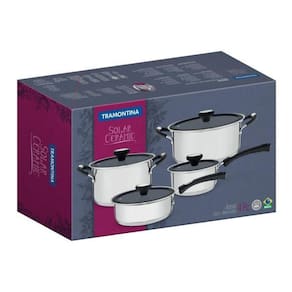 Jogo De Panelas Tramontina Solar Ceramic Em Aço Inox Fundo Triplo Com Revestimento Interno Em Cerâmica Grafite 4 Peças