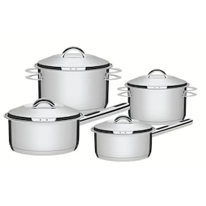 O design clean da linha Solar foi criado para tornar mais simples as tarefas de forno e fogão. O Jogo de Panelas Tramontina Solar em Aço Inox com Fundo Triplo 4 Peças possui um design moderno, com acabamento em alto brilho. O fundo triplo (aço inox + alumínio + aço inox) distribui o calor uniformemente, proporcionando um cozimento mais rápido e uniforme, economizando energia e deixando os alimentos aquecidos por mais tempo. Desenho limpo e sem cantos torna a limpeza mais fácil. Sua tampa tem saída de vapor e encaixe perfeito.