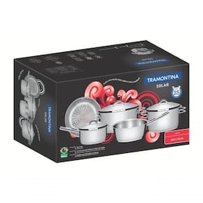 Jogo De Panelas Tramontina Solar Em Aço Inox Com Fundo Triplo 5 Peças
