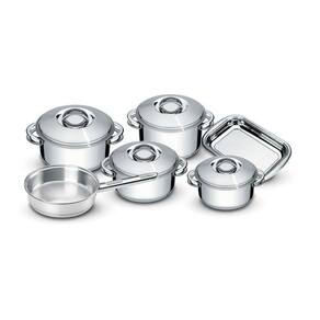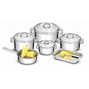 Composição - 01 Assadeira Cosmos 29,5 x 19,2 cm01 Frigideira sem tampa 20 cm 2,14 Litros01 Caçarola rasa 16 cm 1,40 Litros01 Caçarola rasa 20 cm 2,9 Litros01 Caçarola rasa 24 cm 4,7 Litros01 Caçarola funda 20 cm 3,60 Litros