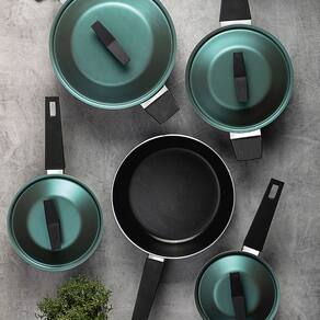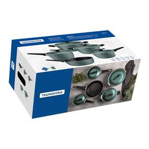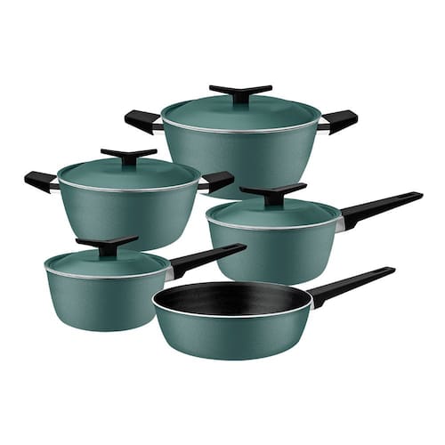 Especificações Gerais do Produto: Pegador / Cabo: Baquelite com acabamento soft touch Dimensões AxLxP (mm): Caçarola Ø 20cm; Caçarola Ø 24cm; Frigideira Funda Ø 24cm; Panela Ø 16cm; Panela Ø 18cm Cor: Verde Mar Material: Alumínio e baquelite Garantia: 90 dias junto ao fabricante Referência: 28399230 Tecnologia da Panela: Starflon Excellent Pode ir à Máquina de Lavar Louças?: Não Capacidade da Panela: Caçarola 2,3L; Caçarola 4,3L; Frigideira Funda 2,8L; Panela 1,2L; Panela 1,9L Linha: Spezia Revestimento Interno: Antiaderente Tipo de Fogão: Gás, elétricos e vitrocerâmicos (resistência elétrica) Tampa: Panelas e Caçarolas: sim, em alumínio