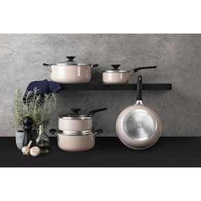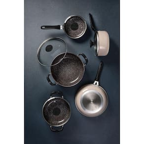 Composição - 1 Panela 18 cm 2 L;1 Panela 16 cm 1,35 L;1 Caçarola 20 cm 2,9 L;1 Caçarola 24 cm 4,8 L;1 Frigideira funda 24 cm 2,9 L.
