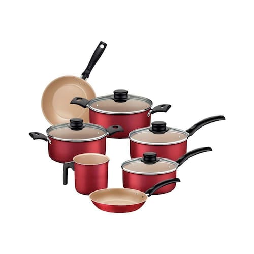 - Marca: Tramontina; - Pegador / Cabo: Baquelite Antitérmico e Nylon; - Cor: Vermelho; - Material: Alumínio, baquelite e vidro;. - Referência: 20297761; - Tecnologia da Panela: Starflon Max; - Pode ir à Maquina de Lavar Louças?: Sim; - Linha: Turim; - Garantia: 90 dias junto ao fabricante.