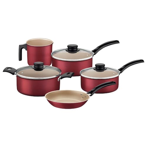 Com o jogo de panelas Tramontina Turim em alumínio com revestimento interno e externo em antiaderente Starflon Max vermelho 5 peças você vai ter a melhor opção para preparar suas receitas com praticidade e qualidade. Desenvolvidas para uso diário, as peças são produzidas em alumínio com revestimento interno e externo em antiaderente Starflon Max, características que proporcionam um cozimento rápido e uniforme dos alimentos, evitam que eles grudem na superfície, as tornam fácil de limpar e não prejudiciais a sua saúde. Os cabos e alças são em baquelite e os pegadores das tampa em nylon, materiais que não aquecem e proporcionam um manuseio muito mais confortável e seguro. Um jogo durável, que pode ser lavado na máquina de lavar louças e que acompanha tampas de vidro temperado com bordas de aço inox, que auxiliam e facilitam o preparo das receitas!