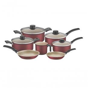 Jogo De Panelas Tramontina Turim Antiaderente 7 Peças Vermelho A Linha Turim sempre faz sucesso na sua cozinha. Além da praticidade do cozimento uniforme, proporcionado pelo revestimento interno e externo de antiaderente Starflon T1, elas permanecem bonitas por muito mais tempo. São fáceis de limpar, pois, devido ao antiaderente, os alimentos não grudam. Recomendações de Uso: - Ao utilizar utensilios quentes tenha cuidado redobrado. Se necessário, utilize proteção para as mãos e mantenha fora do alcance de crianças. - Para sua , ao utilizar utensílios com cabos, mantenha os mesmos sempre voltados para o centro do fogão. - Ao utilizar seu utensílio em fogões com grade, mantenha a peça centralizada e alinhe o cabo com a grade, para reduzir o risco de queda.- Para descarte dos produtos e embalagens siga as orientações de reciclagem vigentes. Informações Adicionais: