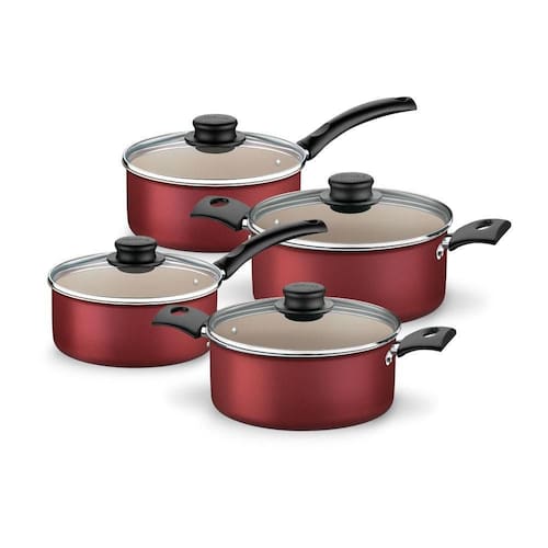 Especificações Técnicas Marca: Tramontina Coleção: Turim Cor: Vermelho Material: Alumínio Espessura: 1,2 mm Revestimento antiaderente: Sim Tipo de revestimento: Starflon Max Lavável em lava-louças: Sim Quantidade de peças: 4