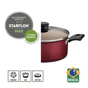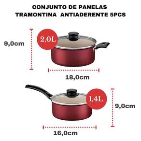 O Jogo De Panelas Tramontina Antiaderente Turim Vermelho 5 Peças é ideal para completar a sua cozinha com itens que deixaram sua rotina mais prática. As panelas Tramontina são produzidas com materiais de excelente qualidade, pensando sempre na saúde e bem-estar da sua família.Um Conjunto de Panelas perfeito para facilitar o preparo dos alimentos e descomplicar a limpeza. O Jogo Turim, da Tramontina, vem com 5 peças produzidas em alumínio com revestimento antiaderente Staflon Max, proporcionando um cozimento uniforme dos alimentos e sem deixar grudar.As panelas e as caçarolas são acompanhadas de tampa de vidro com borda de aço inox e cabos, alças e pegadores em material antitérmico, facilitando e levando mais segurança para o manuseio. Requinte, simplicidade e qualidade que não podem faltar na sua cozinha. Especificações TécnicasMarca: TramontinaColeção: TurimCor: VermelhoRevestimento antiaderente: SimTipo de revestimento: Starflon MaxLavável em lava-louças: SimQuantidade de peças: 5Conteúdo da embalagem:- 1 Frigideira 18 cm - 0,7 L- 1 Caçarola 18 cm - 2 L- 1 Panela 16 cm - 1,4 L- 1 Fervedor 12 cm - 1,0 L- 1 Colher de Nylon VermelhaSobre a TramontinaA Tramontina é reconhecida como referência de qualidade em mais de 120 países, apoiando na inovação, no design, na tecnologia e no valor do capital humano para cumprir uma missão indelegável: gerar valor ao consumidor nas mais diversas fronteiras, culturas, épocas e ocasiões.Aviso: Imagens meramente ilustrativas.
