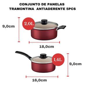 Especificações Técnicas Marca: Tramontina Coleção: Turim Cor: Vermelho Revestimento antiaderente: Sim Tipo de revestimento: Starflon Max Lavável em lava-louças: Sim Quantidade de peças: 5