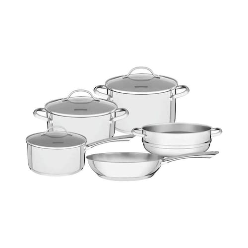 Valorizando o bem-estar e a praticidade na cozinha, a Tramontina lança o Jogo de Panelas Tramontina Una em Aço Inox com Fundo Triplo e Tampas de Vidro 5 Peças! Produzido totalmente em aço inox com acabamento alto brilho e fundo triplo (aço inox + alumínio + aço inox), que distribui o calor uniformemente, proporcionando um cozimento mais rápido e uniforme, economizando energia e deixando os alimentos aquecidos por mais tempo. Todas as peças possuem tampa de vidro com saída de vapor e encaixe perfeito; e seu desenho limpo e sem cantos, torna a limpeza mais fácil e prática, além de poder ir diariamente à máquina de lavar louças. A escolha certa para quem busca um jogo de panelas com ótimo custo-benefício e um design que faz bonito em qualquer cozinha! Mais saudável: por ser feita de aço inoxidável, a caçarola Tramontina não libera nenhum tipo de resíduo nas suas receitas. Fácil de usar: uma caçarola prática para todas as suas receitas e que faz bonito em qualquer tipo de fogão: gás, elétrico, vitrocerâmico e indução. Tampa de vidro com saída de vapor e encaixe perfeito. Mais durável: o inox Tramontina é uma matéria-prima nobre, resistente e que vai fazer bonito por muito mais tempo na cozinha. Economiza tempo e energia: o segredo está no fundo triplo (aço inox + alumínio + aço inox), que distribui o calor uniformemente, proporcionando um cozimento mais rápido. Por isso, você pode manter o fogo baixo durante todo o preparo e, assim, poupar energia. Fácil de limpar: deixar sua caçarola brilhando é simples, você só precisa de água, sabão e uma esponja macia. Se preferir, é só colocar na máquina de lavar. Observações A capacidade volumétrica máxima para cozimento é de 3/4 da capacidade total da peça.Antes de utilizar o produto, remover as eventuais etiquetas e lavar com água quente e detergente. Use uma fonte de calor brando para evitar que o alimento grude no fundo da panela. O fundo triplo distribui uniformemente o calor, não sendo necessário o fogo alto. E, além disso, você economiza energia. Quando a panela for utilizada no fogão a gás, a chama não deve ultrapassar a base da panela. No caso de uso de chapa elétrica, a chapa deverá ter diâmetro igual ou inferior ao da panela. Sempre dissolva o sal em água fervendo ou com os alimentos, mexendo os ingredientes no início do cozimento. Não aqueça o alimento colocando uma panela do mesmo diâmetro sobre a outra. Esse procedimento é perigoso, pois cria vácuo e impossibilita a retirada do mesma. Se a tampa da panela de aço inox Tramontina ficar presa pelo efeito do vácuo durante o resfriamento, basta puxar ou aquecer novamente até neutralizar o efeito do vácuo. O cabo de inox aquece durante o cozimento. Aconselhamos o uso de luvas durante o manuseio. Alguns alimentos que possuem amido, como massa e arroz, poderão deixar manchas na parte interna da panela durante o cozimento. Para remover facilmente as manchas, passe um pano umedecido com suco de limão ou vinagre, ou use a Pasta para Polir e Remover Manchas Tramontina. Evite deixar alimento na panela por muito tempo; o sal também pode provocar manchas. Para que a panela de aço inox fique sempre bonita e com brilho, recomendamos que seja lavada somente com detergente e esponja. A Tramontina desenvolveu uma pasta especial para polir e remover manchas nos produtos de aço inoxidável, que está disponível nos principais pontos de venda. Depois da lavagem, sempre que possível, enxágue a panela com água quente e seque-a imediatamente, para que ela mantenha o brilho original, pois o cloro e as substâncias contidas na água podem deixar manchas na panela. Não deixe a panela vazia sobre uma fonte de calor. Deixe panelas quentes somente em superfícies resistentes ao calor. Características Gerais EAN13 7891116149126 DUN14 17891116149123 NCM 7323.93.00 Peso Líquido 4,8460 kg. Peso Bruto 5,7560 kg. Metragem 0,030497 m³. Dimensões Embalagem (Compr. X Larg. X Alt.) 506x 287x 210 mm.