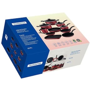 Componente: ; Assadeira Rasa 28 cm 2,0 L, ;Assadeira redonda 22 cm 1,7 L, ; Caçarola 18 cm 2,0 L, ; Caçarola 20 cm 2,8 L, ; Fervedor 12 cm 1,2 L, ; Frigideira 16 cm 0,4 L, ; Frigideira 20 cm 0,8 L, ; Panela 14 cm 0,8 L Turim, ; Panela 16 cm 1,4 L, ;Panquequeira/Tapioqueira 22 cm 0,6 L.
