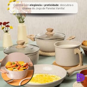 Prepare suas receitas diárias com o jogo de panelas Fullcommerce Vanilla, ideal para trazer praticidade e estilo à cozinha. Com corpo em alumínio de alta resistência e revestimento interno cerâmico, as peças distribuem o calor de forma uniforme para um cozimento mais rápido e eficiente. O revestimento antiaderente cerâmico evita que os alimentos grudem, permitindo usar menos óleo e facilitando a limpeza após o uso. Cabos e pegadores em baquelite antitérmico garantem manuseio mais seguro, enquanto as tampas de vidro temperado permitem acompanhar o preparo sem perder calor. Versátil, o conjunto em tom creme Vanilla combina com diferentes estilos de cozinha e atende bem ao uso doméstico no dia a dia.